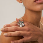 Celebrate nature's artistry with the Alina Silver Petal Ring. Crafted from ethically sourced stainless silver, this delicate piece captures the timeless beauty of a blooming flower in its organic, realistic petal shape.