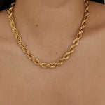 This elegant gold necklace features a stunning golden chain with a delicate twist... Literally. A visually captivating accessory that undeniably enhances your beauty.