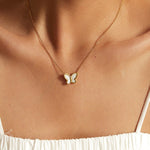 Add a touch of elegance with AVARIA's Flutterby Mother of Pearl Necklace. The butterfly-shaped pendant, adorned with freshwater pearls brings a rather graceful charm that easily uplifts any look. Hypoallergenic and waterproof for worry-free wear.