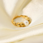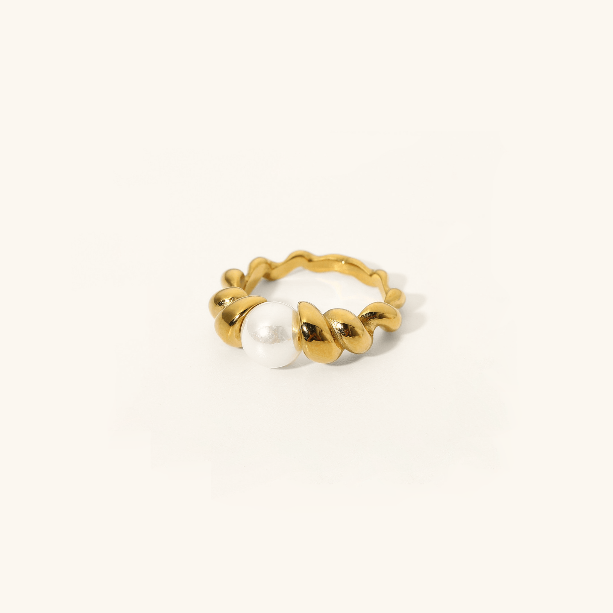 Embrace the Scarlett Freshwater Pearl Ring for a touch of modern femininity. Its delicate pearl and textured 18k gold band radiate a subtle glow, a beautiful expression of your personal style. Hypoallergenic for safe wear, as always.