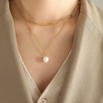 Channel your inner mermaid with the Undine Freshwater Pearl Necklace. It flaunts a paperclip chain paired with a lustrous pearl pendant inspired by the beauty of the ocean. And speaking of the ocean, this timeless masterpiece is 100% waterproof allowing you to have it on without worries whether you shower, workout, or even go on a swim.