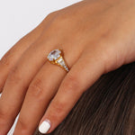 Stand out with Syllia. A stunning piece crafted from waterproof 18K Gold adorned with dazzling diamond simulants. A ring of enduring beauty and exceptional quality, designed for those who appreciate the timeless allure of a diamond's sparkle.
